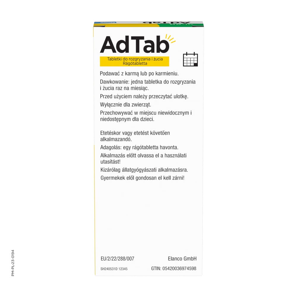 ✅Ze względu na niewielki rozmiar, atrakcyjny smak i postać do rozgryzania i żucia, tabletki przeciw pchłom i kleszczom AdTab™ są łatwe do podania. Tabletki należy podawać bezpośrednio z jedzeniem lub po karmieniu.