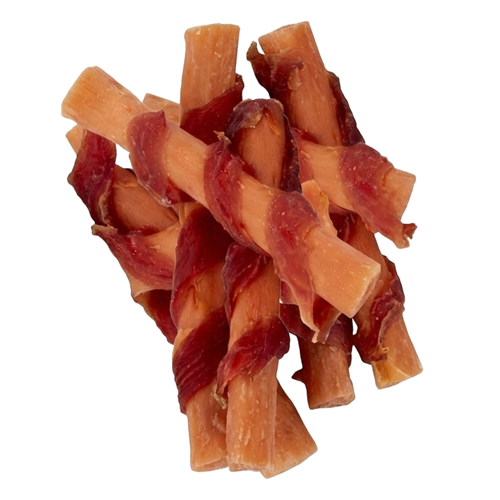 Produkt charakteryzuje się recepturą bez dodatku zbóż i glutenu, co czyni go idealnym wyborem dla psów z wrażliwym układem pokarmowym lub alergiami pokarmowymi. Niska zawartość tłuszczu pozwala na podawanie przysmaku bez obaw o nadwagę psa, a brak sztucznych barwników i wzmacniaczy smaku gwarantuje naturalną jakość przekąski. Praktyczne opakowanie 80g z zamknięciem strunowym zapewnia świeżość pałeczek przez długi czas po otwarciu.