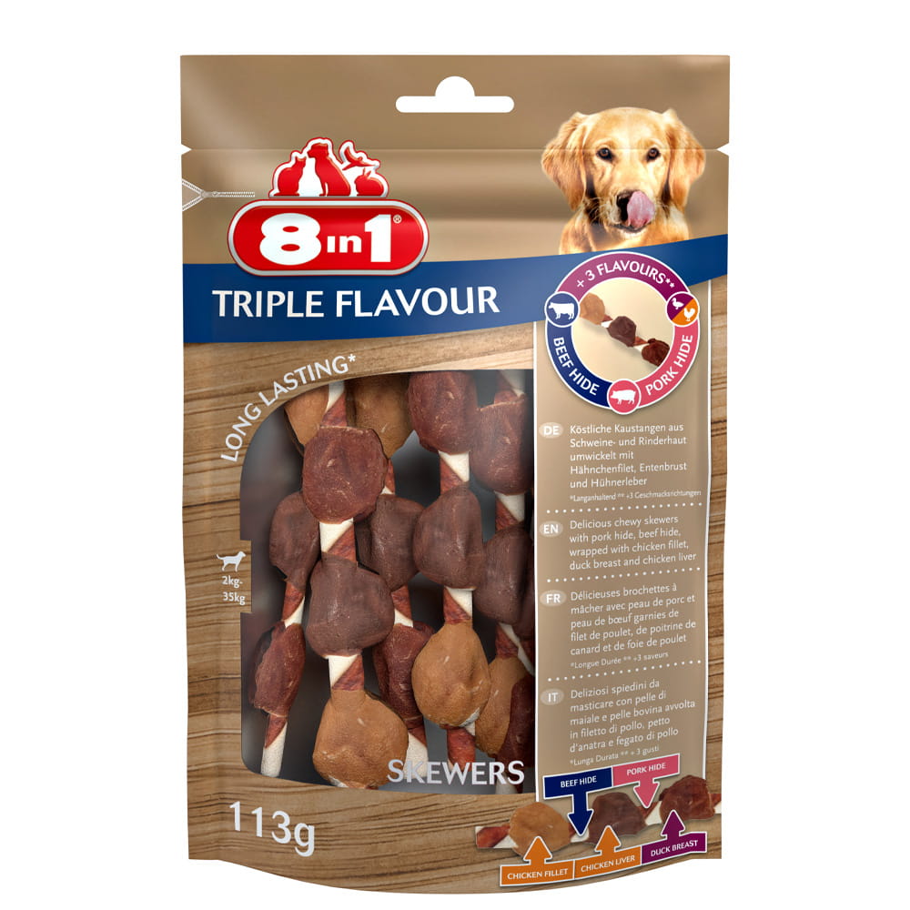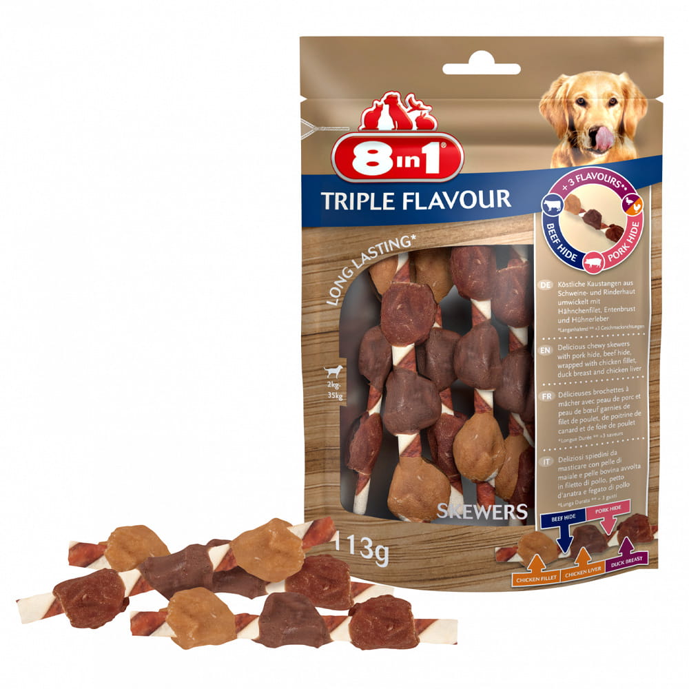 8in1 Przysmak dla psa Triple Flavour Skewers 6szt. gryzak z mięsem