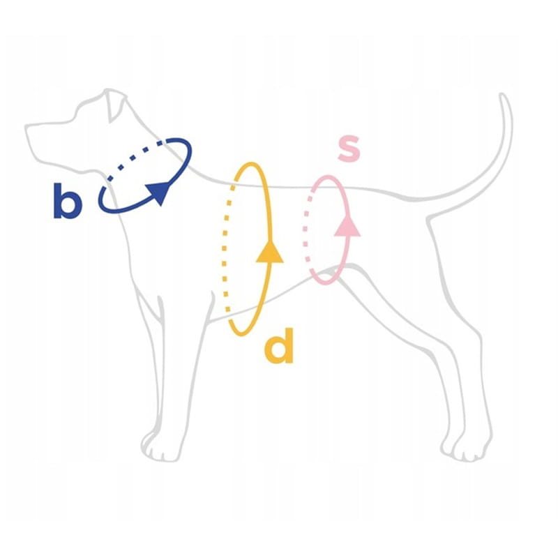 Szelki amiplay Reflective Safety to doskonały wybór na codzienne spacery z psem. Odblaskowe elementy pomogą zwiększyć bezpieczeństwo każdego ulubieńca w mniej sprzyjających warunkach. Łatwe w zakładaniu i regulacji, dobrze rozkładają ciężar i zapewniają kontrolę nad psem. Stworzone zostały z myślą o pupilach, borykających się z problemem dużej lękliwości, które potrafią wydostać się z klasycznych modeli szelek. Aby dobrać właściwy rozmiar, zmierz obwód przedpiersia psa (nisko, nad łopatkami) - pomiar C, obwód klatki piersiowej w najszerszym miejscu - pomiar D oraz obwód za ostatnimi żebrami - pomiar S jak na rysunku poniżej. Następnie porównaj pomiary z tabelą rozmiarów. Niektóre rozmiary pokrywają się - w takim wypadku zdecyduj o szerokości taśmy. Weź pod uwagę wielkość psa, a także jego temperament - im większy i bardziej energiczny jest pies, tym większy rozmiar należy wybrać.