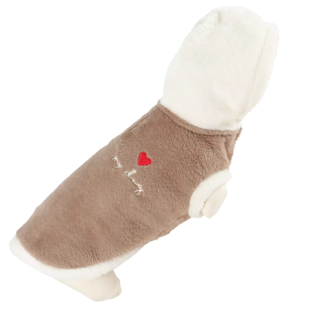 Bluza TEDDY charakteryzuje wyjątkowa miękkość tkaniny, a tym samym komfort noszenia dla psa. Ubranko z kapturem wykonane z niezwykle miłego w dotyku sztucznego futerka idealnie sprawdzi się w okresie jesienno-zimowym. Sweterek posiada zapięcie na rzep na wysokości szyi oraz ozdobny haft z inskrypcją. Wyposażony w otwór na smycz.