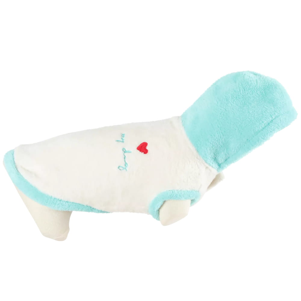 Bluza TEDDY charakteryzuje wyjątkowa miękkość tkaniny, a tym samym komfort noszenia dla psa. Ubranko z kapturem wykonane z niezwykle miłego w dotyku sztucznego futerka idealnie sprawdzi się w okresie jesienno-zimowym. Sweterek posiada zapięcie na rzep na wysokości szyi oraz ozdobny haft z inskrypcją. Wyposażony w otwór na smycz.