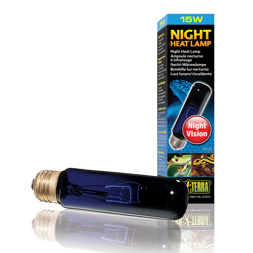 Zaleca się stosowanie żarówki nocnej Exo Terra w połączeniu z termostatem, aby uniknąć przegrzania zbiornika w nocy. Lampa powinna być wkręcana wyłącznie w oprawy porcelanowe (ceramiczne), ponieważ szkło żarówki podczas pracy nagrzewa się do wysokich temperatur. Należy unikać dotykania szklanej powierzchni palcami przed montażem, aby zapobiec przedwczesnemu przepaleniu się włókna. Produkt najlepiej sprawdza się jako uzupełnienie żarówek dziennych z serii Daytime Heat lub Reptile UVB.
