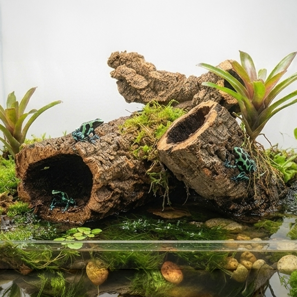 Tubę korkową można umieścić płasko na podłożu jako tunel lub ustawić pionowo/pod skosem, tworząc dodatkowe piętra w zbiorniku. Przed włożeniem do terrarium zaleca się przepłukanie tuby w ciepłej wodzie w celu usunięcia drobinek kurzu i naturalnych pozostałości leśnych. W akwaterrariach tuba może częściowo unosić się na powierzchni, tworząc naturalną wyspę dla płazów.