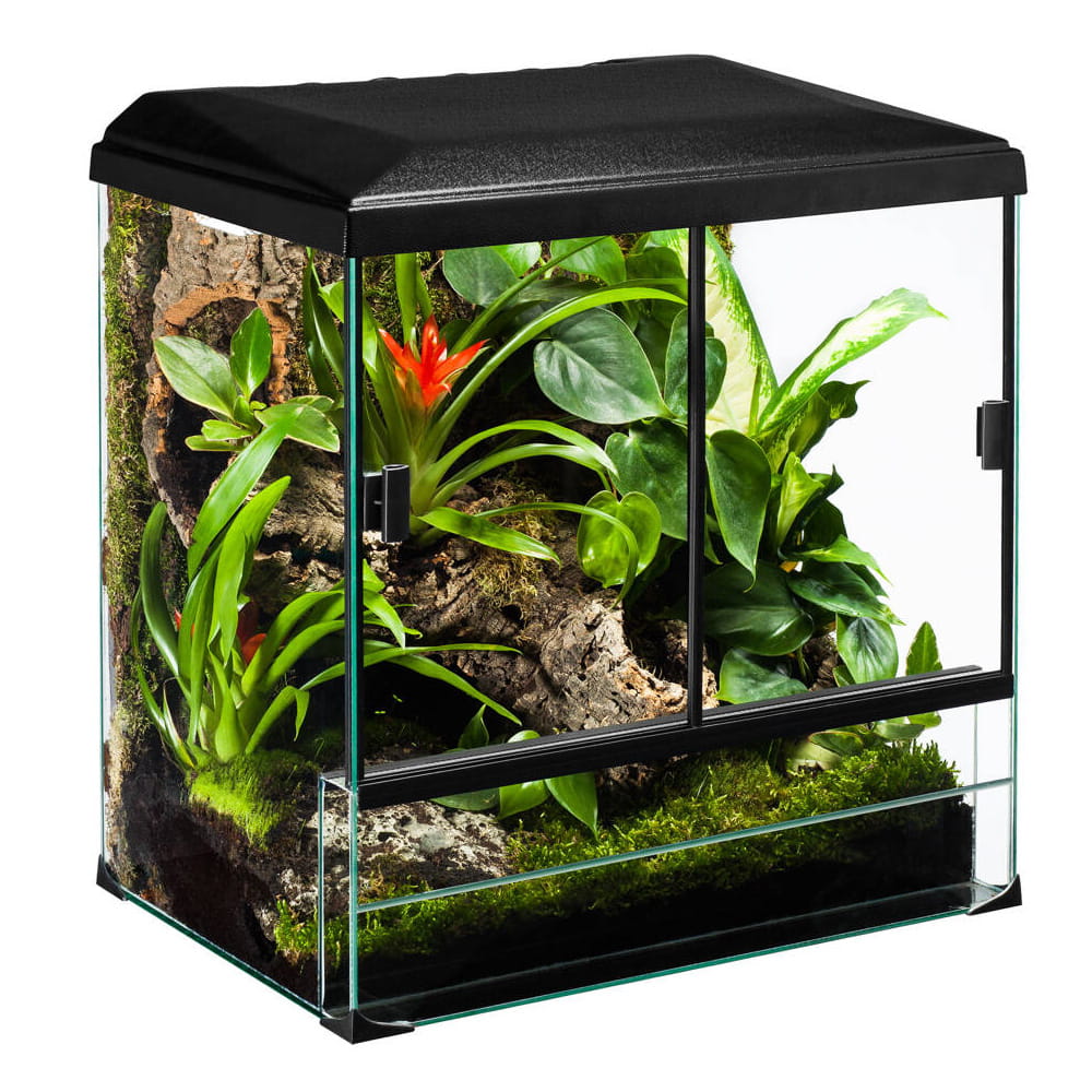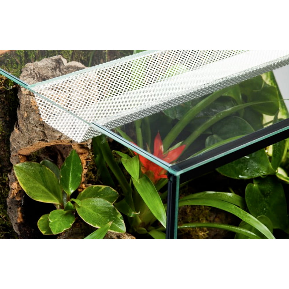 Terrarium wyposażone jest w system wentylacyjny, a także nową przelotkę na przewody kablowe. Przesuwne drzwi wraz z funkcyjnym uchwytem zapewniają wygodny dostęp do wnętrza. Wykonane są ze szkła Float charakteryzującego się wysoką przejrzystością, nie zaburzają postrzegania kolorów. Szkło to charakteryzuje się również wysoką wytrzymałością.