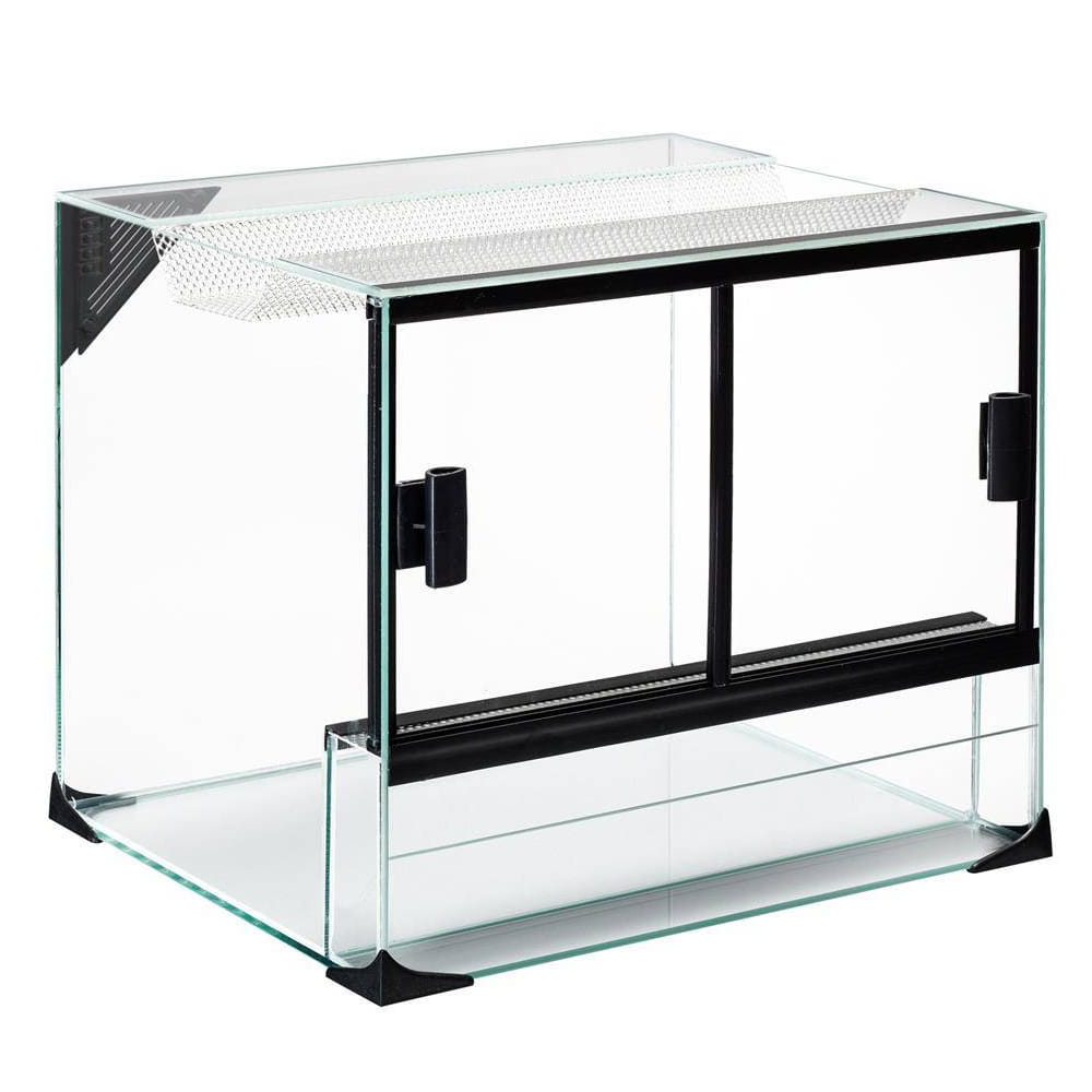 Terrarium wyposażone jest w system wentylacyjny, a także nową przelotkę na przewody kablowe. Przesuwne drzwi wraz z funkcyjnym uchwytem zapewniają wygodny dostęp do wnętrza. Wykonane są ze szkła Float charakteryzującego się wysoką przejrzystością, nie zaburzają postrzegania kolorów. Szkło to charakteryzuje się również wysoką wytrzymałością.